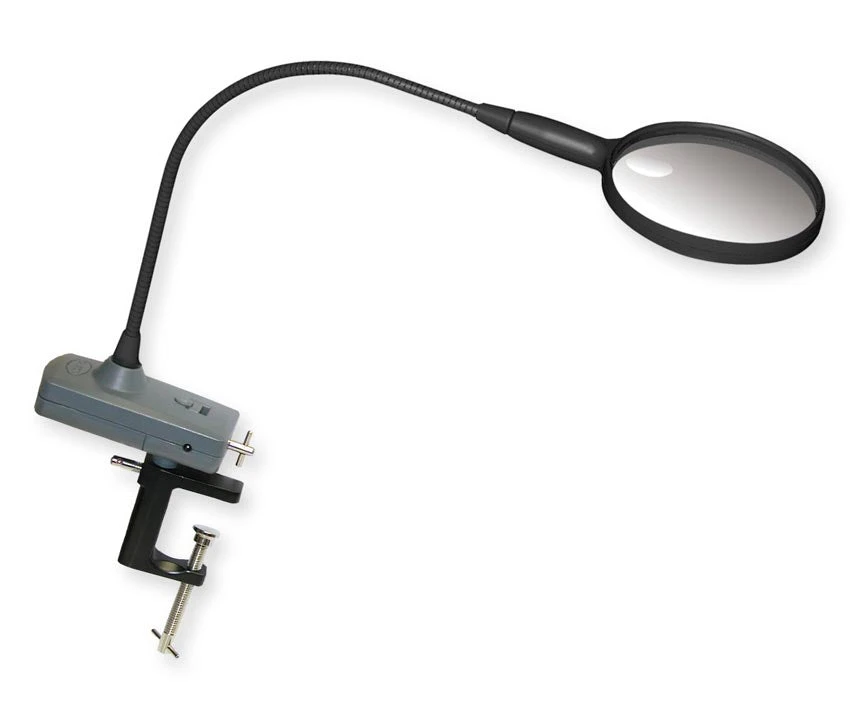 The OD-65 MagniFly™ from Carson Optical is a lighted, fully-adjustable, flexible arm Hands Free Magnifier that attaches to your table-top, Rod Lathe or can be clamped to most fly-tying vises for convenient Hands Free use. Its large 2x power lens gives you a sharp, distortion-free view and 4x power spot lens allows you to see even the finest details with ease. Three super bright LED lights allow for use in low-light conditions. The Magnifly™ Magnifier operates on 3-AAA batteries (not included) or supplied 4.5v DC adapter.