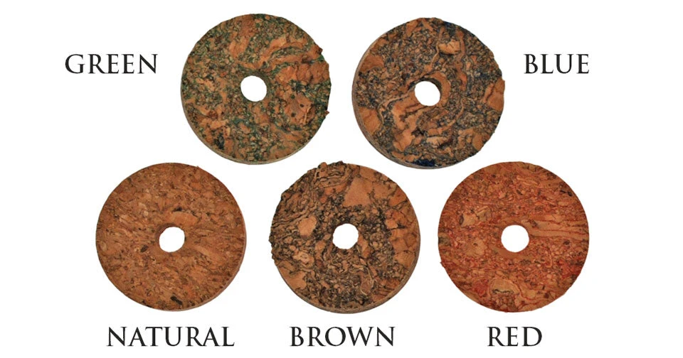Burl Cork Rings are used to make accents on custom cork handles. Available in Red, Green, Blue, Brown and Natural Burl.