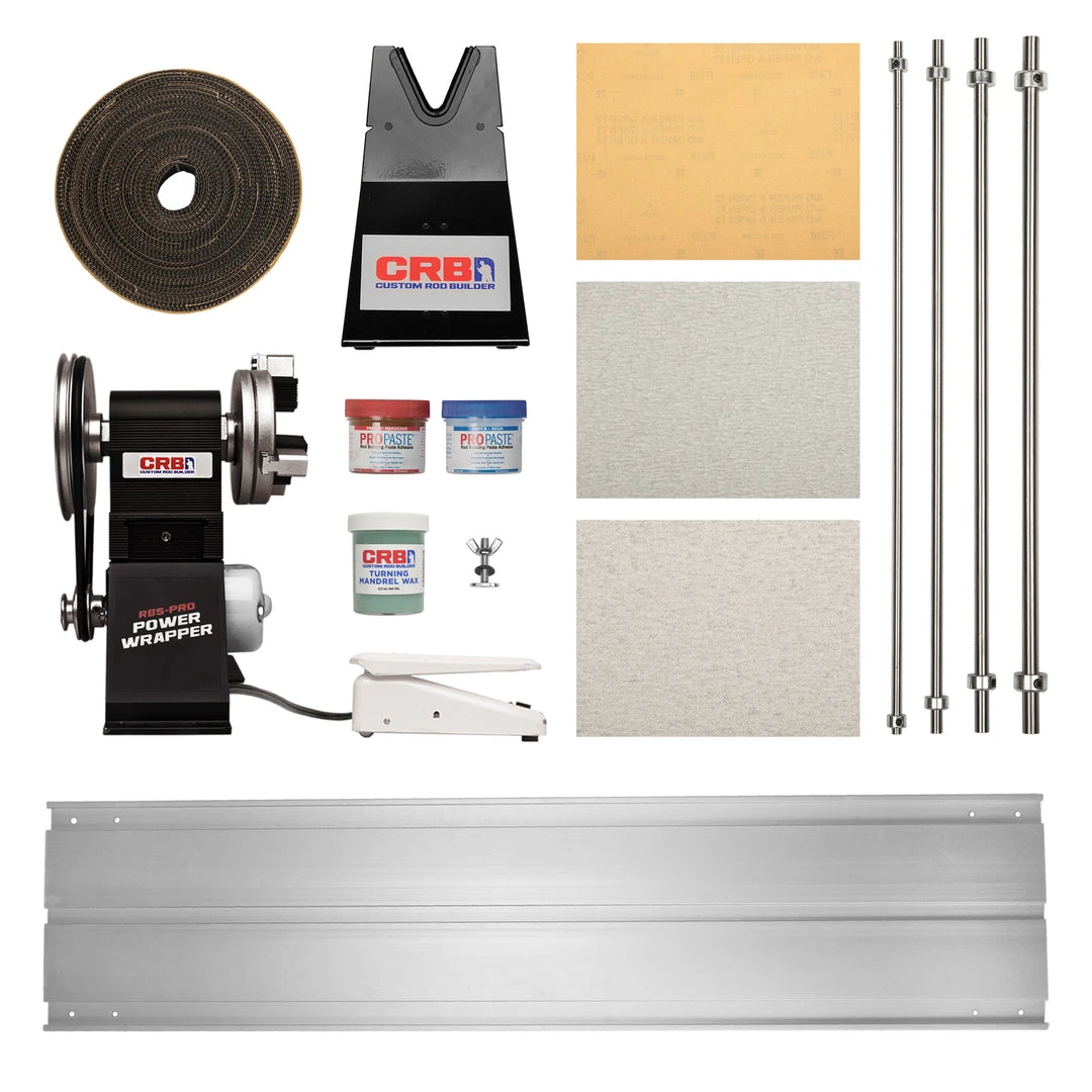 CRB has revolutionized the power wrapper. At the center of the RBS-PRO is the 3-jaw chuck, crafted from aircraft grade aluminum. This chuck includes two sets of teeth for large diameter rod blanks down to small OD mandrels for handle turning. Four distinct modes of operation are achieved through a dual pulley system, while the motor speed can be manually titrated for more delicate work through the use of a smooth-operating foot pedal.