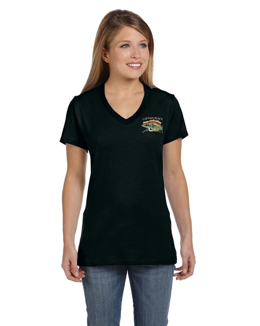 Printed on high-quality Hanes Ladies’ 4.5 oz., 100% Ringspun Cotton nano-T® V-Neck T-Shirt. Available in Pink or Black, sizes XS, S, M, L, XL and 2XL.
